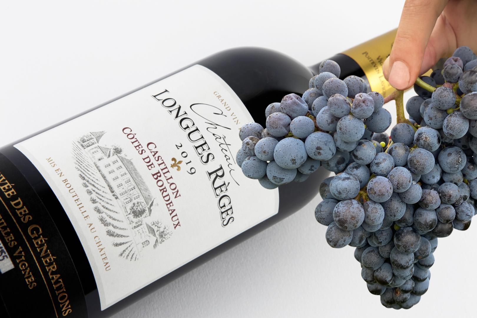 Le Castillon – Côtes de Bordeaux du Château Longues Règes présente une robe rubis profond et brillante.